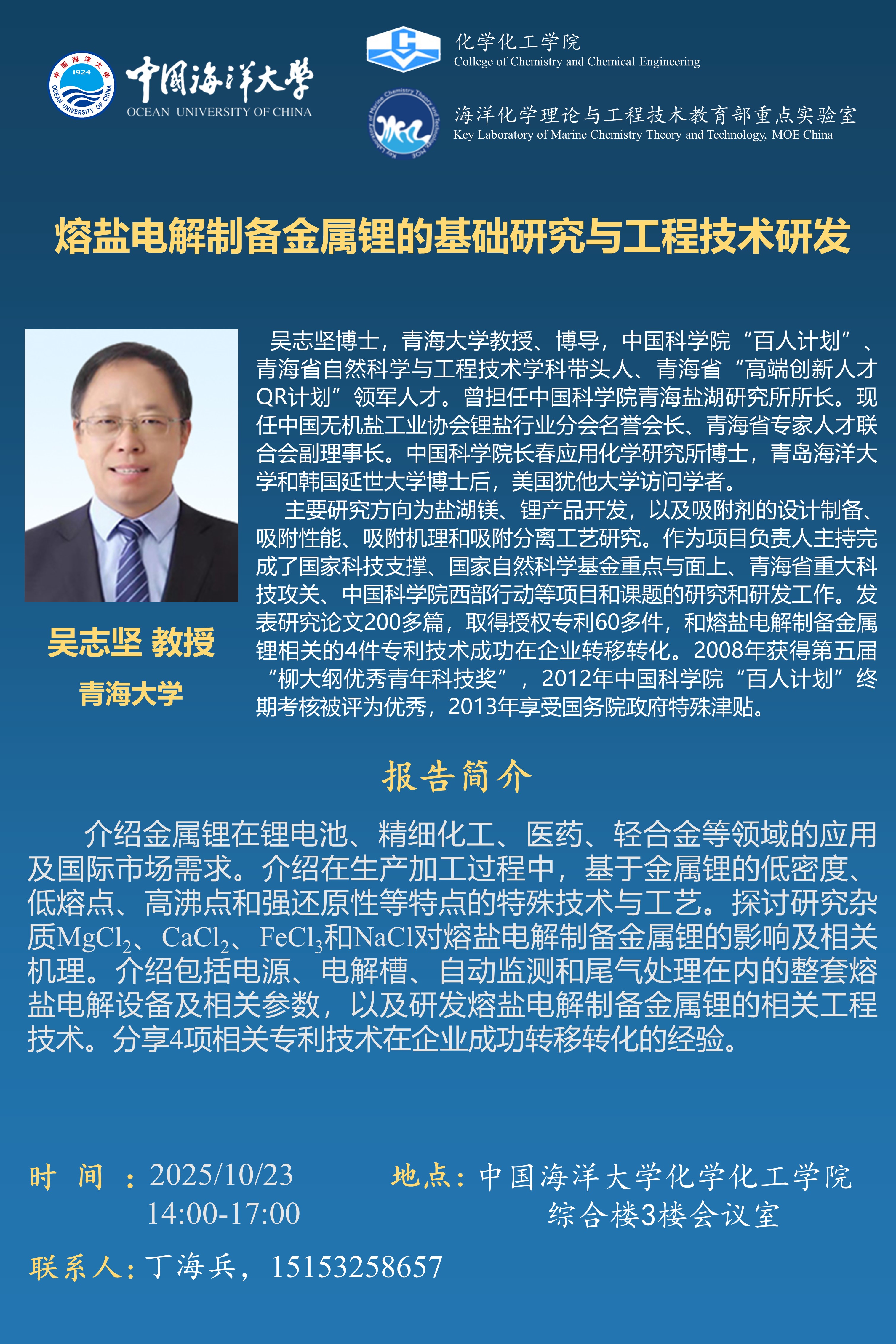 吴志坚教授报告:熔盐电解制备金属锂的基础研究与工程技术开发