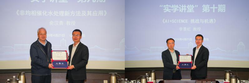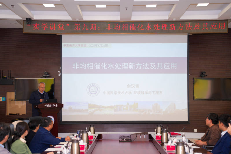 2026年4月21日上午,由中国海洋大学海洋化学理论与工程技术教育部重点实验室、化学化工学院主办的“实学讲堂”第九期与第十期活动在中国海洋大学图书馆第一会议室接续举行。活动特邀中国工程院院士、中国科学技术大学俞汉青教授,中国科学院院士、清华大学李景虹教授作专题学术报告,为全校师生带来两场高水平学术盛宴。两场报告分别由海洋化学理论与工程技术教育部重点实验室副主任包锐教授、化学化工学院院长李先国教授主持。