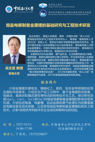 吴志坚教授报告:熔盐电解制备金属锂的基础研究与工程技术开发