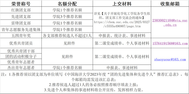 为深入贯彻落实习近平总书记给学校全体师生重要回信精神,培养具备扎实专业基础、科研创新思维与学科交叉实践能力的优秀本科生,为化学相关领域输送高质量人才,学院将开展本科生科研能力提升计划选拔工作,现将有关要求通知如下:一、选拔机制1.选拔对象:本批次面向2025级全日制本科生进行选拔。2.选拔条件:基本条件为核心课程科学文化成绩排名前40%,对科研兴趣浓厚、科研潜力突出者优先选拔。原则上每年级选拔人数不超过15人,总数根据当年符合条件学生数量动态调整。二、选拔流程1.自主报名:意向报名学生填写《化学化工学院本科生科研能力提升计划申请表》和《汇总表》(见附件1、2)报送至本班学习委员处,由学习委员审核汇总后,4月12日前将所有申请材料电子版发送至wzt@ouc.edu.cn。2.材料审核:学院对报名学生提交的材料进行初步审核,筛选出符合基本条件的学生进入面试环节。3.面试考核:材料审核满足条件的同学将进入面试,面试环节需学生自行准备ppt(汇报时间7分钟),并提前30分钟到指定面试地点签到,面试分为专业知识问答(占比60%)和综合素质考察(占比40%)两部分,重点考察学生专业基础、科研思维、