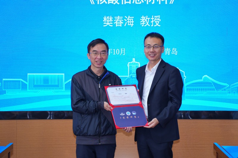 2025年10月13日上午,由中国海洋大学海洋化学理论与工程技术教育部重点实验室/化学化工学院主办的“实学讲堂”第四期活动在中国海洋大学海洋科技大楼前沿报告厅举行。本次活动邀请到中国科学院院士、上海交通大学樊春海讲席教授作题为《核酸信息材料》的学术报告。校内外百余位师生代表齐聚一堂,共同聆听了这场学术盛宴。活动现场座无虚席,学术氛围浓厚。