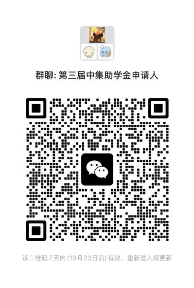 有意申请第三届中集助学金的学生,于10月21日中午12点前填写以下线上报名表并扫码入群。