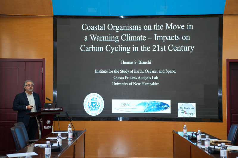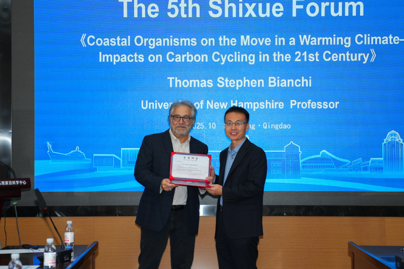 2025年10月22日上午,由中国海洋大学海洋化学理论与工程技术教育部重点实验室/化学化工学院主办的“实学讲堂”第五期活动在中国海洋大学海洋科技大楼前沿报告厅举行。本次活动邀请到新罕布什尔大学Thomas S. Bianchi教授作题为《Coastal Organisms on the Move in a Warming Climate – Impacts on Carbon Cycling in the 21st Century》的学术报告。校内外近百位师生代表齐聚一堂,共同聆听了这场学术盛宴。活动现场座无虚席,学术氛围浓厚。