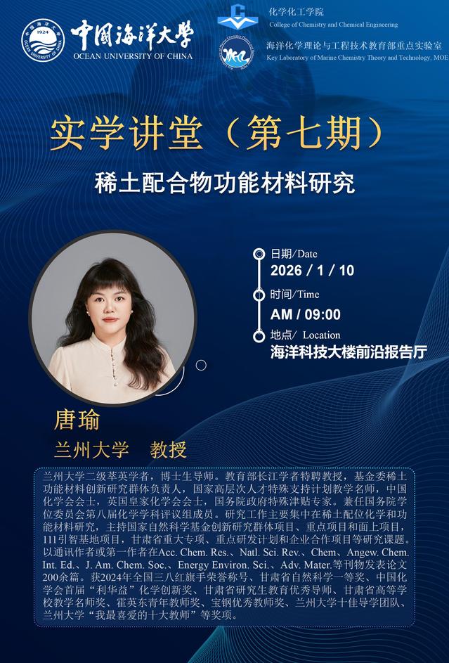 【实学讲堂】第7期-唐瑜:稀土配合物功能材料研究