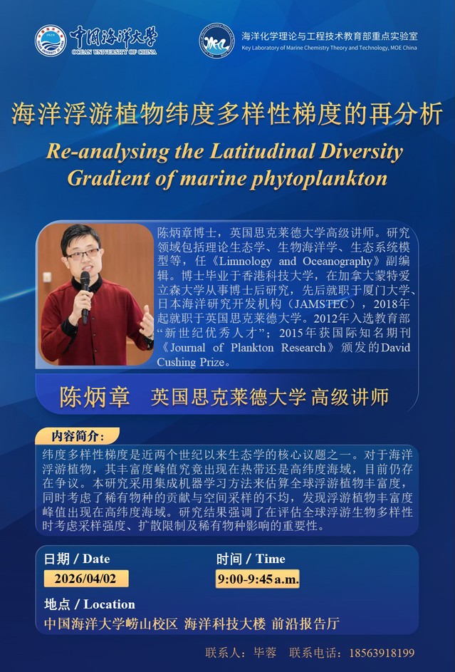 陈炳章报告:海洋浮游植物纬度多样性梯度的再分析